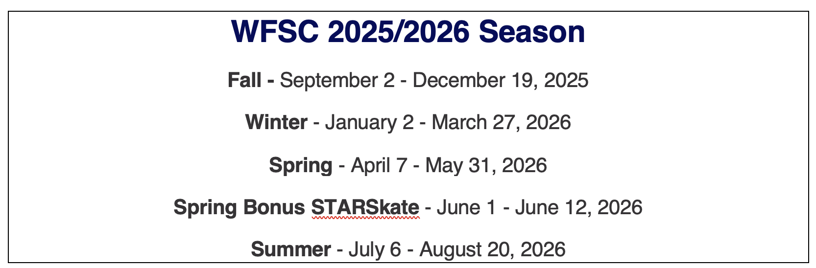 Refunds are accepted prior to the first day of skating, less a $15 Administration Fee.